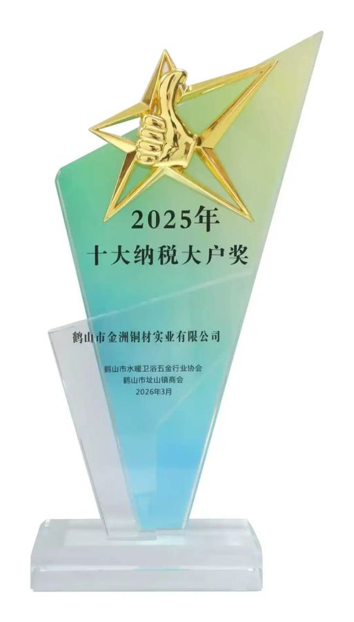 近日,在2026年鹤山市水暖卫浴五金行业协会暨址山镇商会春茗上,金洲铜业凭借卓越的经营业绩和突出的纳税贡献,荣获"2025年十大纳税大户奖"称号。